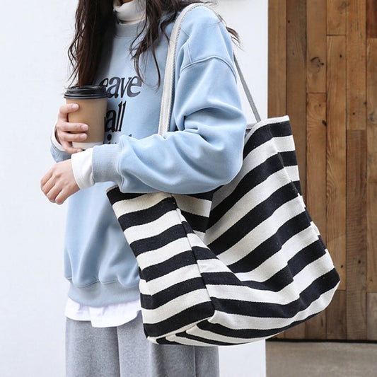 Stripe Textured Canvas Tote Bag