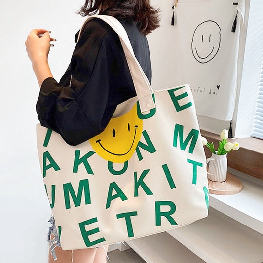 Smile Face Canvas Tote Bag